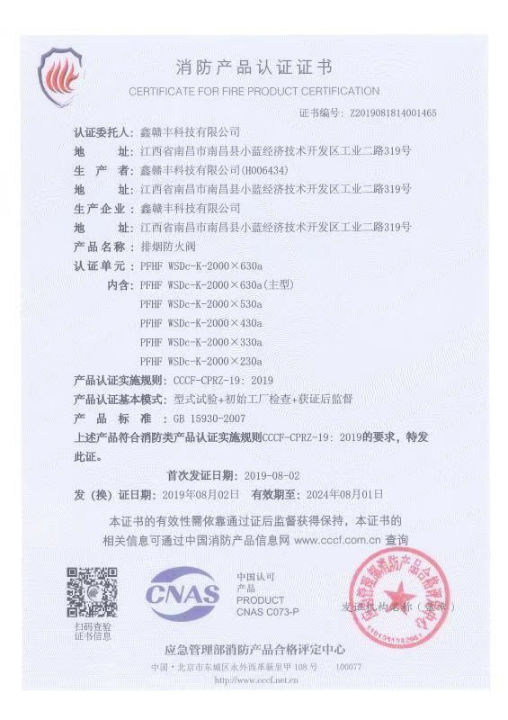 消防產品認證證書